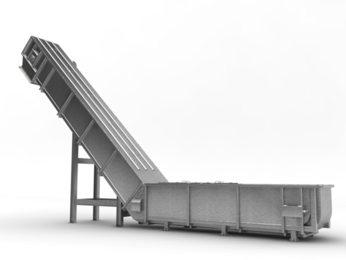 Transportador de fibra de agave por medio de cadena y tablillas metálicas con capacidades desde 50 hasta 400 toneladas de agave por día.